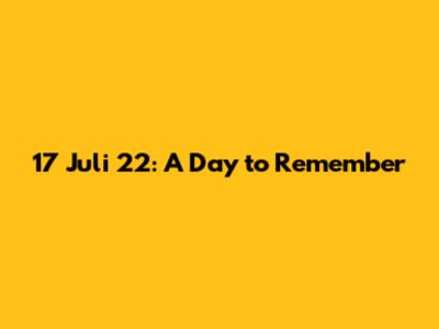 17 Juli 22: Unforgettable Moments & Historical Events