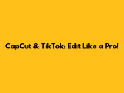 CapCut & TikTok: Edit Like A Pro!
