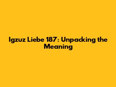Igzuz Liebe 187: Unpacking The Meaning