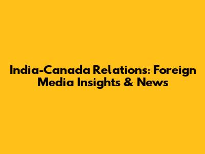 India-Canada Relations: Foreign Media Insights & News